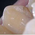 完全に虫歯を取り除くとこの写真の歯の状態のように、見た目にもある程度きれいになるはずです(着色してしまった部分は必ずしも虫歯ではない)。